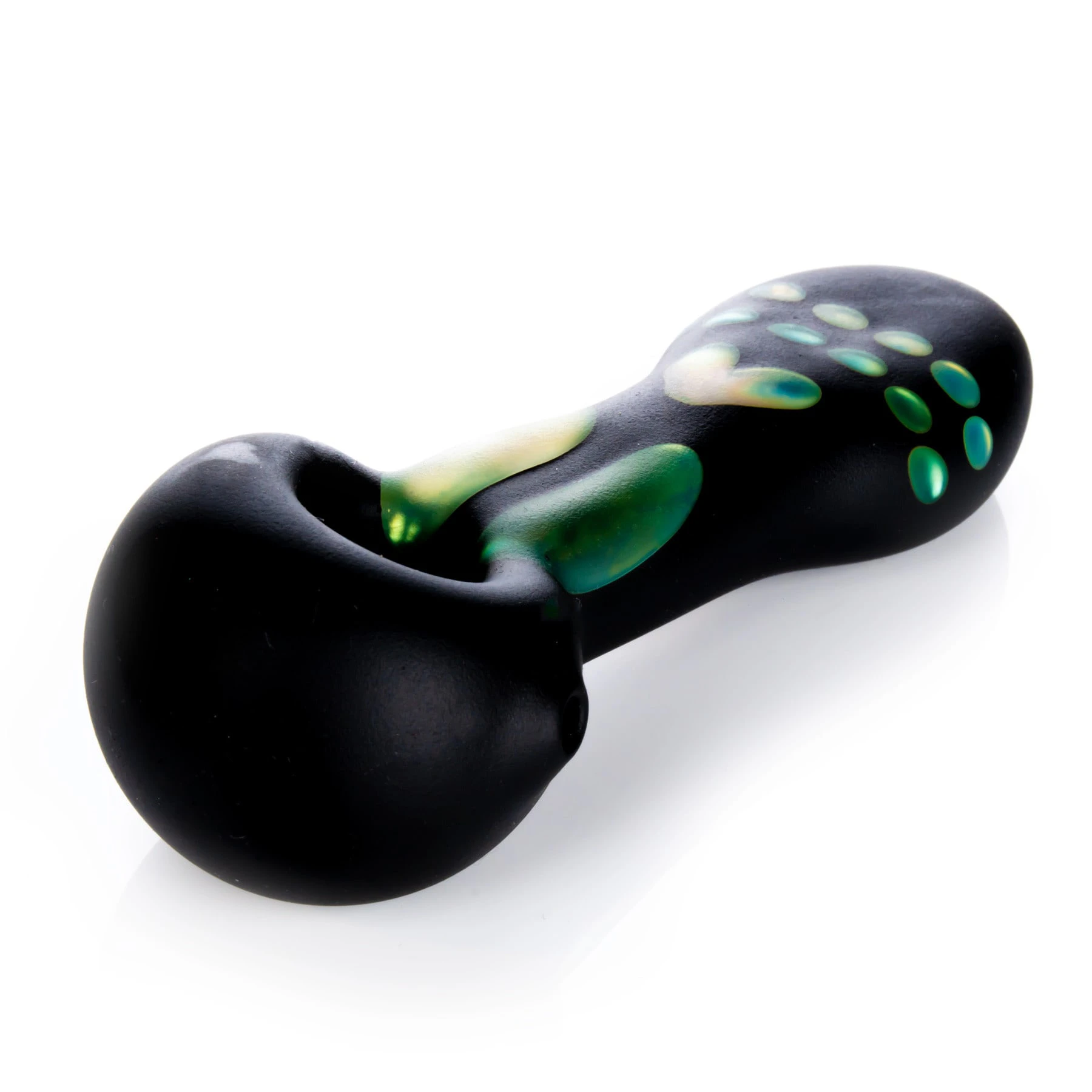 Product Features: - 100% borosilicate glass - Flat mouthpiece - 24K gold accents - Frosted finish What's Included: 1 x 4.5" Frosted Black Skull Spoon Hand Pipe (#3277) 1 x Red Eye Glass® Protective Neoprene Pouch
