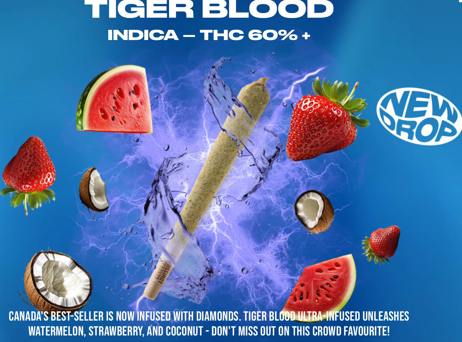 Canada's best-seller is now infused with diamonds with a roaring potency of 60%+ THC. Tiger Blood Ultra-Infused unleashes watermelon, strawberry, and coconut - don't miss out on this crowd favourite!