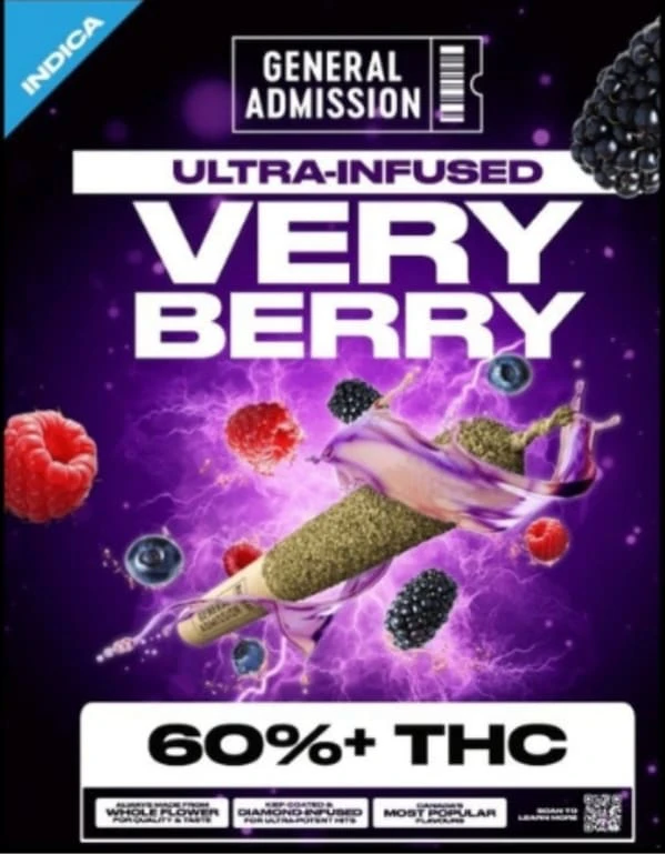 Very bright, very bold, Very Berry. Sweet and juicy and a bunch of berry flavour. G.A.s Very Berry Ultra-Infused is infused with diamonds to crank up the potency to 60% THC.