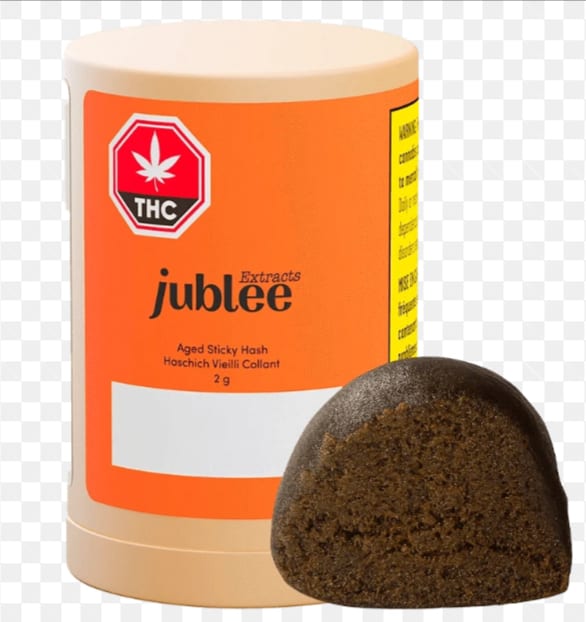 Explore innovation with Jublee Aged Sticky Hash! This Afghan-style hash is crafted using premium kief and in-house full-spectrum hash oil, delivering an authentic, old-school experience with a modern twist. With 36-44% THC, it packs a potent punch while maintaining a sticky, malleable texture, perfect for rolling joints or enhancing your bowl. Each batch is aged for a minimum of 3 months, allowing the flavours and cannabinoids to develop fully for a rich, smooth smoke. The captivating aroma transports you back to the golden era of hash, evoking deep nostalgia with every inhale. Aged Sticky Hash offers users a unique, cannabinoid-rich high. Whether you're a connoisseur or a curious enthusiast, this artisanal hashish guarantees an elevated and memorable experience.